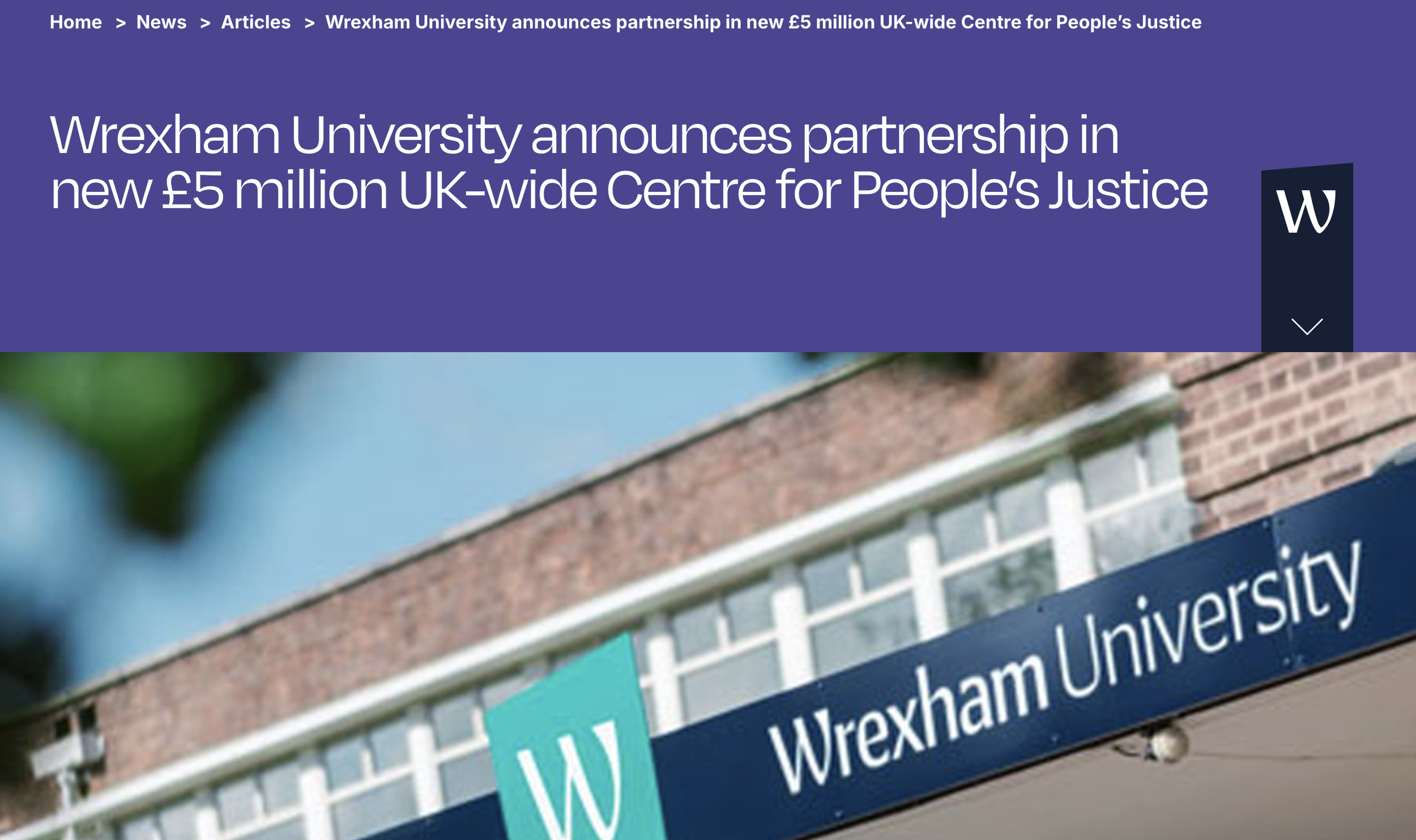 Wrexham University has been announced as a partner in a new UK-wide Centre for People’s Justice, which aims to bring law and social justice research together to support fairer, stronger and more inclusive societies.